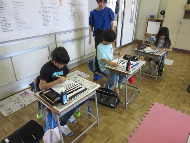 6月5日(木)3年生 今日の授業風景(初めての習字)