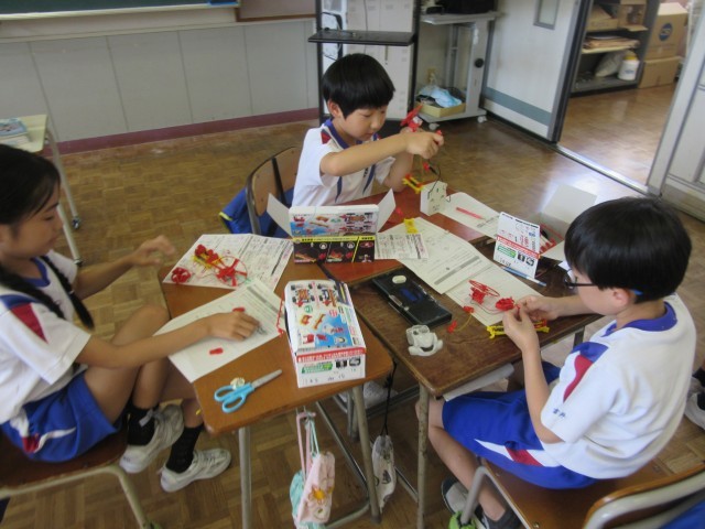 4年生は理科の学習で、様々な電池のつなぎ方を試していました。回路図で表した後、一つの電池の時、2つの電池を直列つなぎ、並列つなぎにした時等、電流の大きさを比べていました。