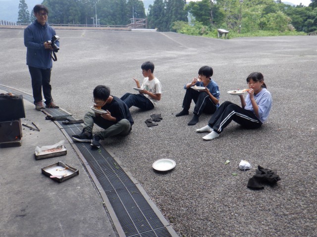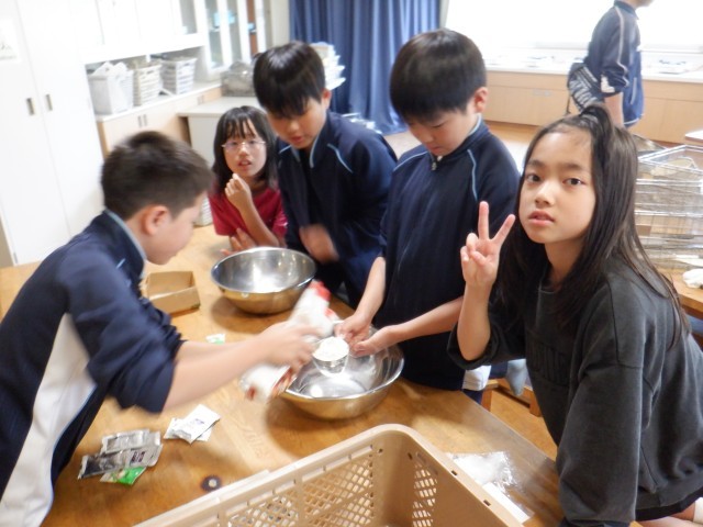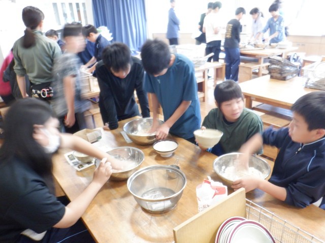2日目は、朝の集いで学校紹介、ピザづくりをしました。