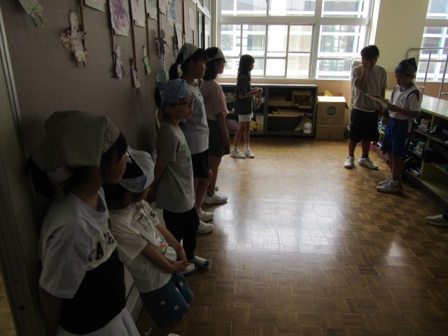 今日から新しい掃除場所です。班のみんなで清掃場所を確認し、新しい場所でも力を合わせて掃除をします。