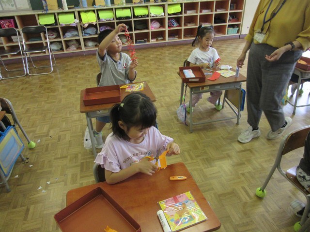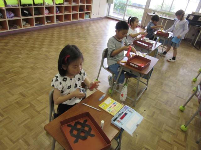 6月10日(火)1年生 今日の授業風景(ちょきちょきかざり)