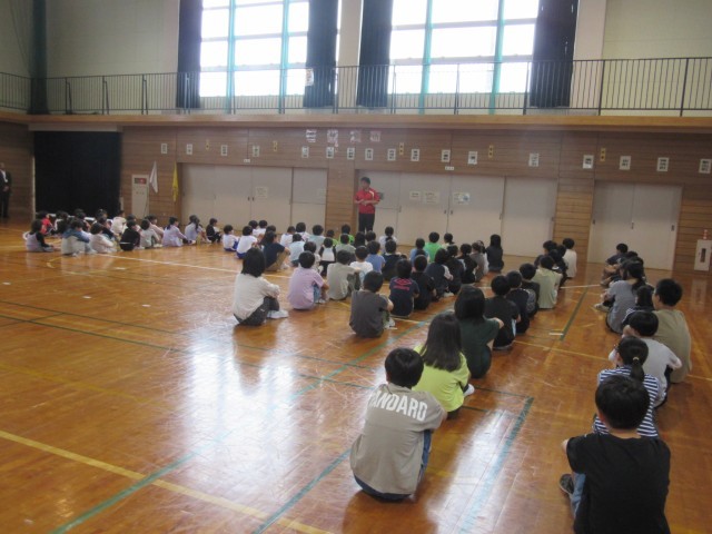 不審者対応の避難訓練を行いました。集合をする際の合い言葉を全校で確認しました。また、普段から「こわいな」「へんだな」「おかしいな」という感覚を大切にして、危険に近付かないようにすることも大切であるという話も真剣に聞いていました。
