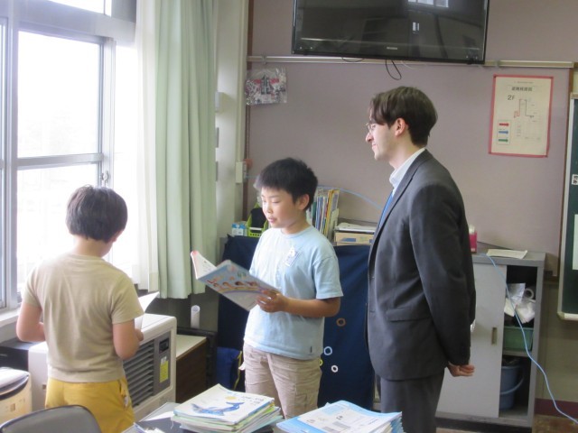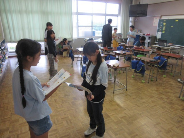 4年生は外国語の学習をしていました。英語で好きな曜日を聞き合い、理由も加えて答えていました。「~って言いたいんだけど、どう言ったらいいかな」等、友達と一緒に考えながら英語でのやりとりをしていました。