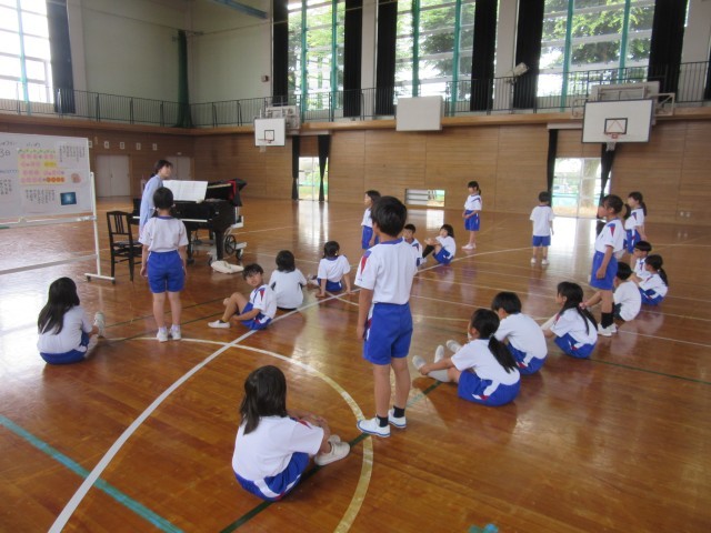 2、3年生は連合音楽会の練習をしていました。先週よりも大きな声が響いていました。大きな声を出すために、深く息を吸うことを意識して練習しました。友達のよいところもたくさん見付けながら、練習をがんばっています。