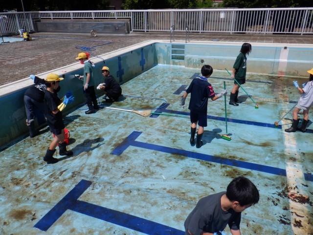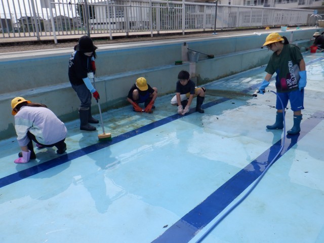 1年生からプール掃除のバトンを今日は最後に6年生が締めくくりました。6年生のがんばりで気持ちよくプール学習が進められそうです。