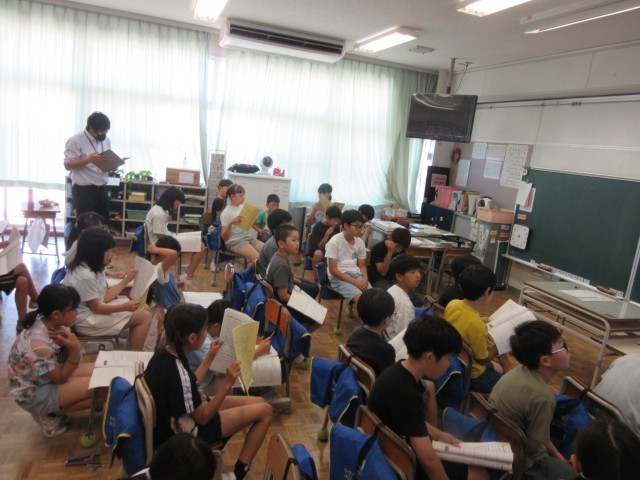 4、5年生は7月1日~2日の宿泊学習の話をしていました。実際に施設の写真を見たり、活動の内容を聞いたりして、宿泊学習に向けての心の準備をしていました。