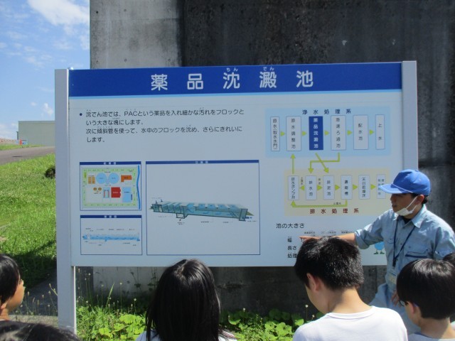 川から取り入れた水を自然の力と薬の力を合わせてきれいな水にする工夫を知ることができました。