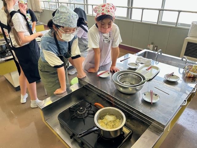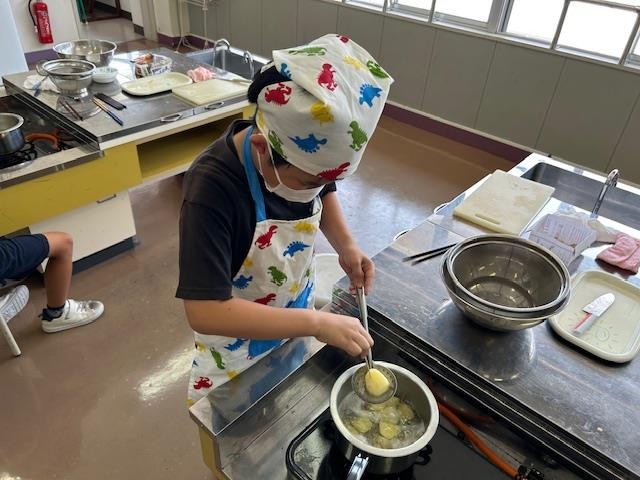 5年生は調理実習で粉ふきいもをつくりました。