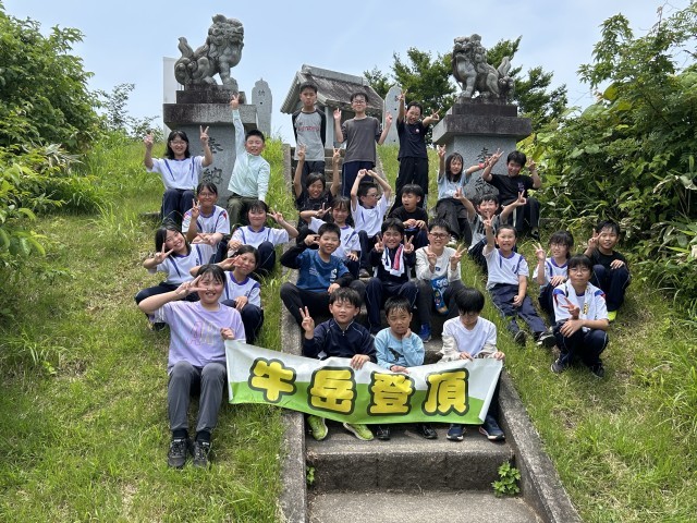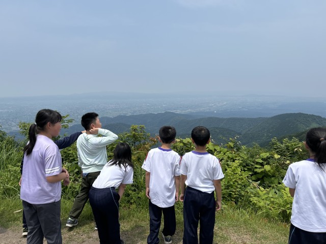 宿泊学習1日目、全員無事牛岳登頂しました。頂上からの景色は素晴らしかったです。みんなで「ヤッホー」と叫びました。