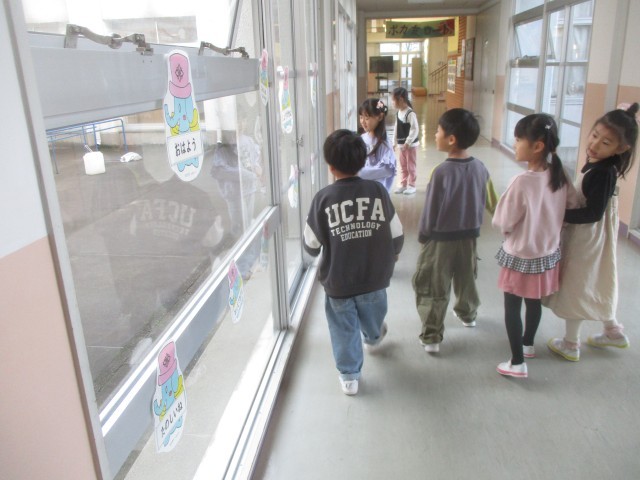 人権週間のとき、言われてうれしい言葉(ぽかぽか言葉)を考えました。1年生からは、「一緒に〇〇しよう」「ありがとう」などの言葉が出ました。学校のみんなが考えたぽかぽか言葉が、今「ポカ友ロード」に掲示されています。