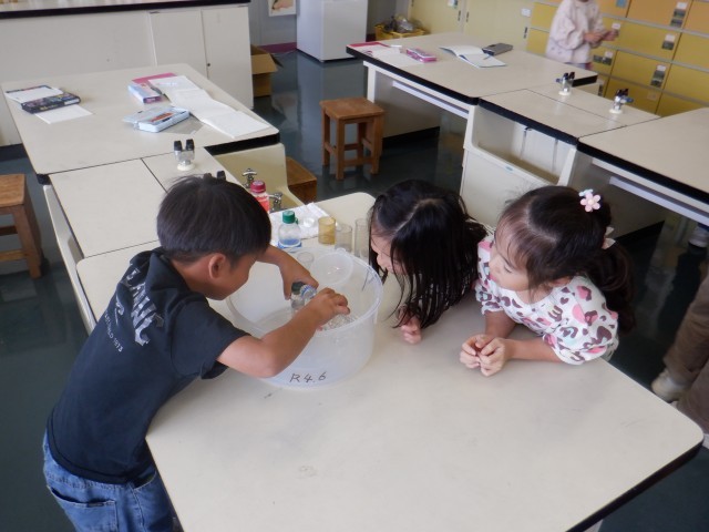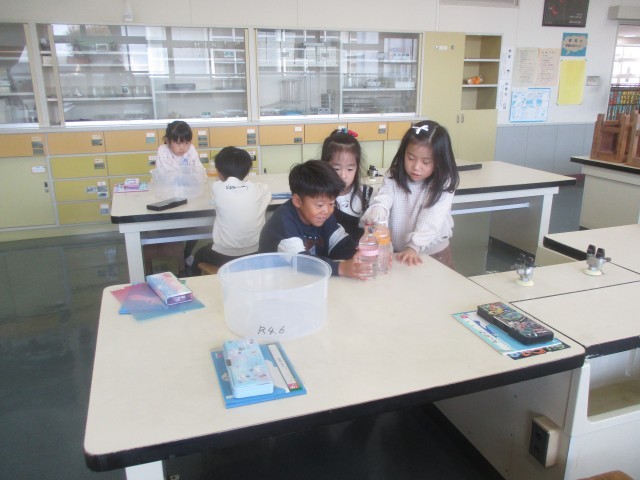 11月11日(火)1年生 今日の授業風景(水のかさをくらべよう)