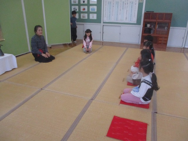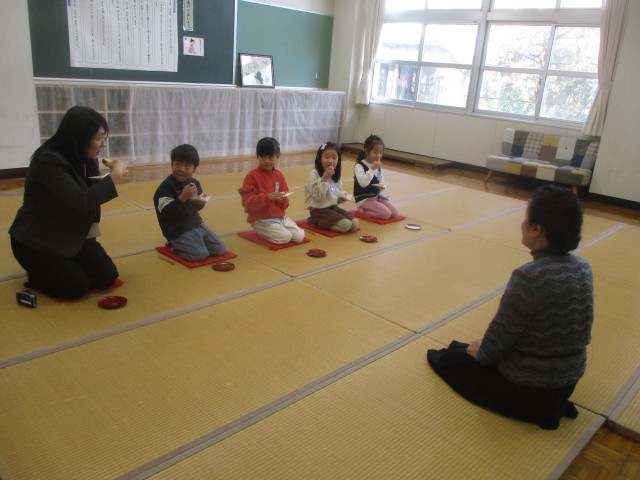 今日は、楽しみにしていた茶道教室で、おいしいお茶とお菓子をいただきました。座っているとき、歩くとき、きれいな姿勢を保とうと頑張っていました。「とてもおいしかった」「茶筅でお茶を点てることが楽しかった」と感想を話す子供たちでした。