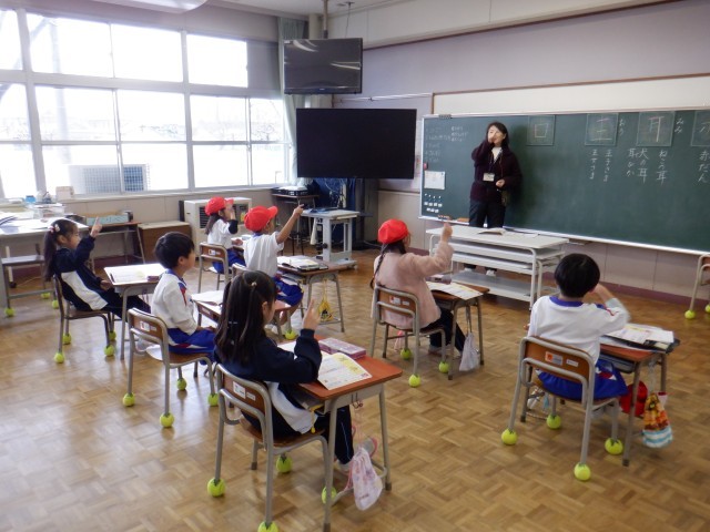 1年生は新しい漢字を学習していました。学習する漢字を使った言葉を探したり、空書きしたりしながら、新しい漢字を練習しています。画数の多い漢字も出てきましたが、子供たちはがんばっています。