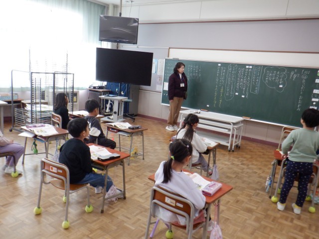 1年生は新しい漢字を学習していました。学習する漢字を使った言葉を探したり、空書きしたりしながら、新しい漢字を練習しています。画数の多い漢字も出てきましたが、子供たちはがんばっています。