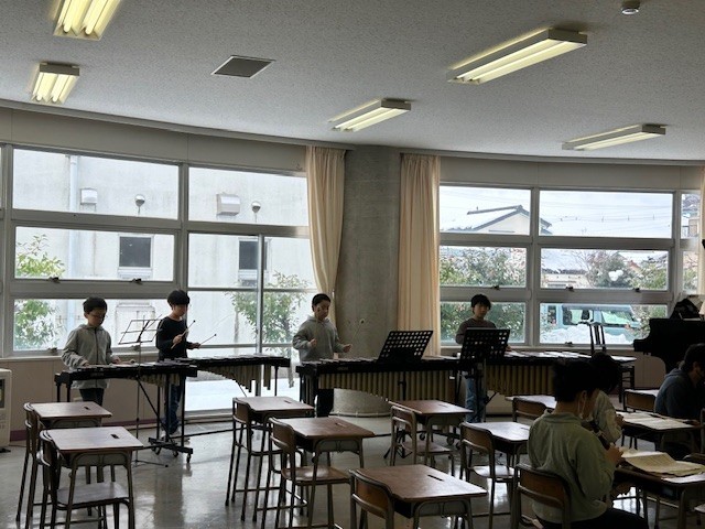 4年生は音楽科で「茶色のこびん」の合奏をしていました。木琴とリコーダーに分かれて、それぞれのパートを演奏しました。きれいに音が重なっていました。