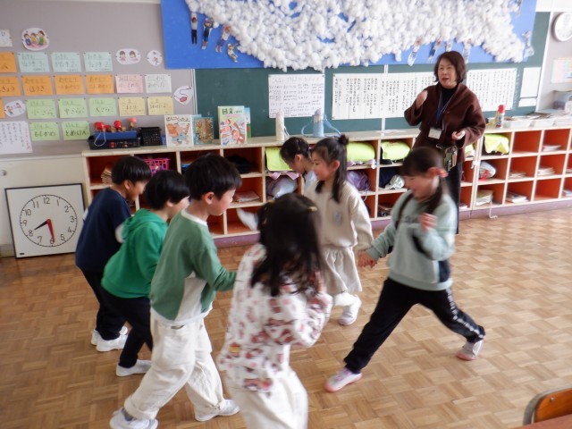 2月19日(木)1年生 今日の授業風景(歌に合わせて遊ぼう)