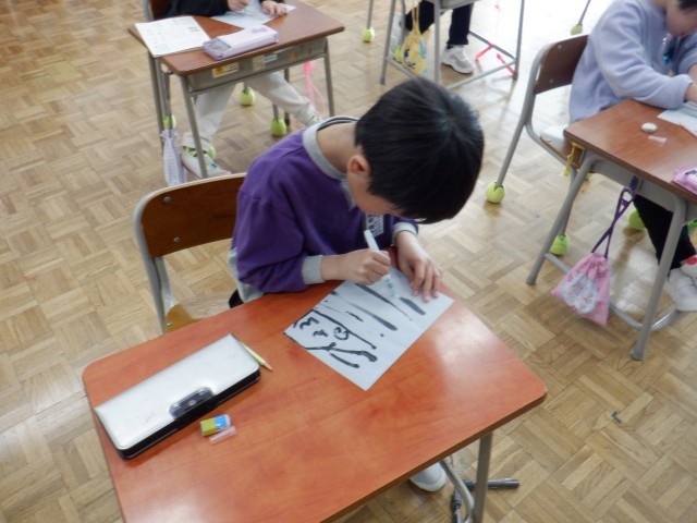 1年生は書写で横書きの文章を書く練習をしました。横書きで学習する教科が多いことに気付き、横書きで上手に書けるようになりたいと頑張っていました。今日はなぞなぞを楽しみながら、とめ・はね・はらい、文字の大きさに気を付けながら練習しました。