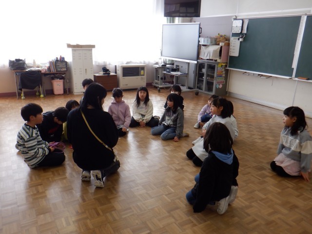 2年生はお楽しみ会をしていました。じゃんけんに勝つと進化をする「進化じゃんけん」をみんなで楽しんでいました。
