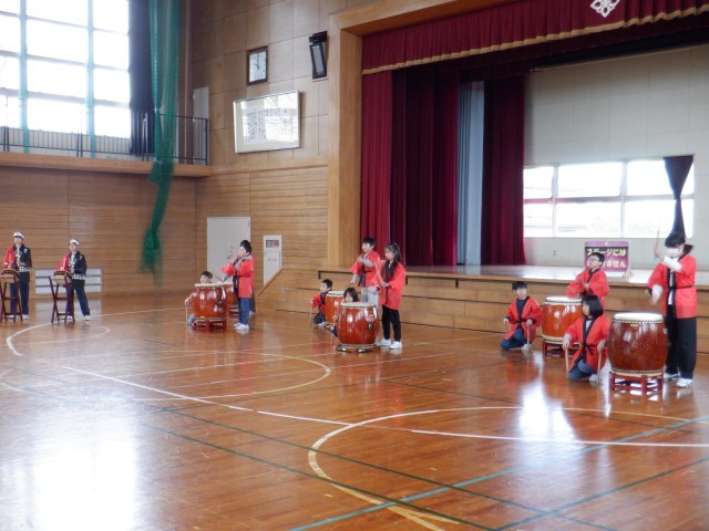 2月6日(金)4、5年生 今日の授業風景(合同和太鼓練習)
