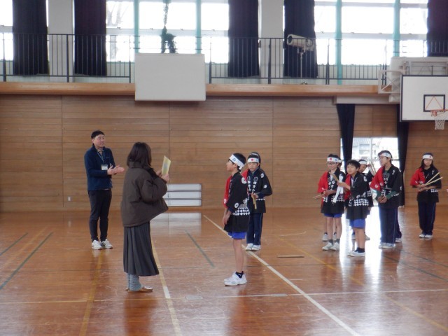 4年生は今年最初の和太鼓練習をしました。締太鼓に合わせてリズムよく太鼓をたたいていました。ばちの使い方の上手になり、いい音が響いていました。