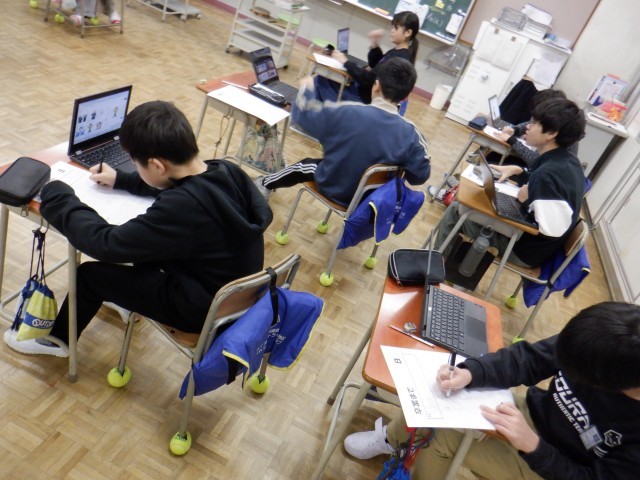 6年生は学習した内容を活かして歴史クイズをつくっていました。本やパソコン等も参考にしながら、みんなが楽しみながら歴史を学べそうな4択問題を作成していました。