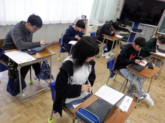 6年生は日本文化の魅力を伝える文章を書いていました。本で調べた日本文化の魅力がより伝わるよう、文章の推敲を重ねながら書いていました。