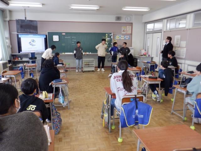 ALTのダニエル先生に、イギリスのクリスマスについて教えてもらいました。日本とは違うところがあり、驚きながら外国の文化に触れることができました。