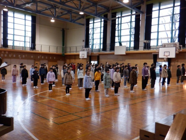 2学期の終業式です。校長先生からは、2学期できることが増えた自分、いろいろなことに挑戦した自分をほめてあげましょうとお話がありました。また、1、3、5年生の代表児童が2学期がんばったことを発表し、学習や行事でがんばったことを話しました。3学期も元気な顔で会えるのを楽しみにしています。