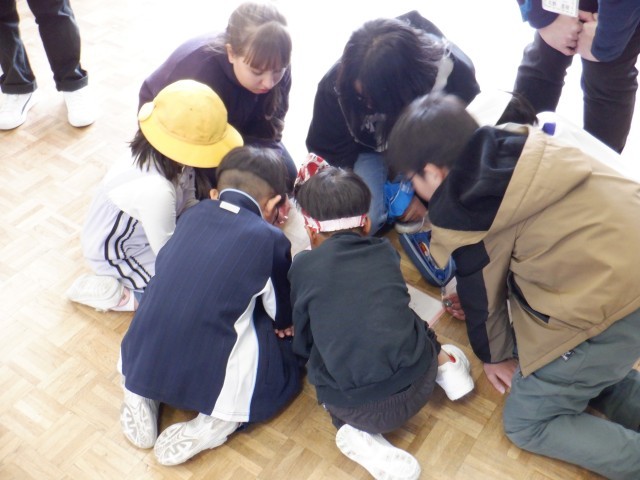 町別児童会を行いました。登校の様子を振り返ったり、冬休み中の行事、安全な過ごし方について町内ごとに話し合いました。