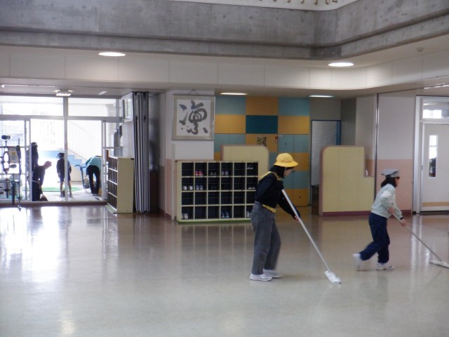 縦割り清掃場所が今日から変更になりました。清掃場所と担当を話し合ってから、清掃活動を行いました。