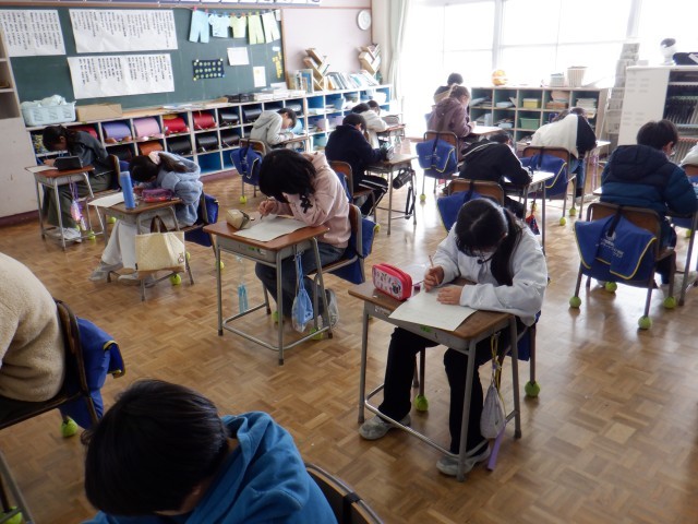全校で計算チャレンジテストを行いました。どの学年も集中して計算問題に取り組んでいます。