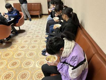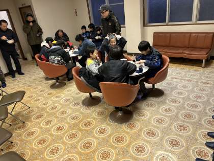 せり見学の後、大漁鍋をいただきました。カニや魚がたくさん入った温かい鍋に、みんな大喜びでした。四方漁港のみなさま、YYPのみなさま、美味しいお鍋をつくってくださった葉多舎さん、PTAのみなさん、ありがとうございました。