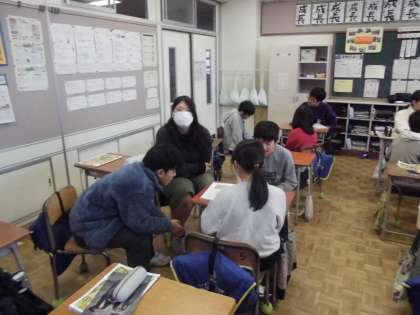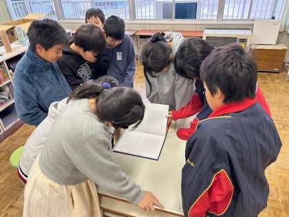 なかよし班で自学ノートを見せ合う、自学ノート交流会を行いました。ノートを回して順番にみんなのノートを見たり、一人のノートをみんなで見てよいところを伝え合ったりしていました。「きれいに字を書きたい」「漢字練習をたくさんしようと思った」等、自分の自学を振り返り、これからに生かそうとしています。