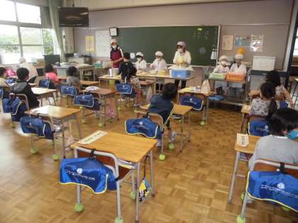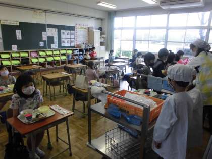 給食当番も2巡目を迎え、配膳も素早くスムーズにできるようになってきました。自分が配膳していないときに静かに待つ姿もかっこいいです。