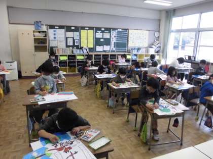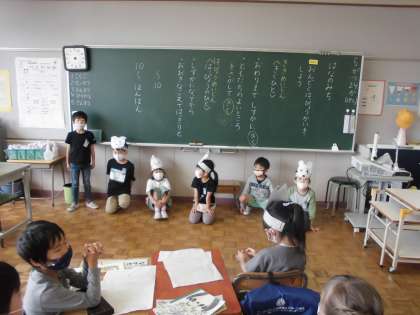 はなのみちの音読発表会をしました。グループで相談して役割分担をしたり動物たちの台詞を考えたりしました。今日は緊張しながらも、自分の役割をしっかりと果たしていました。