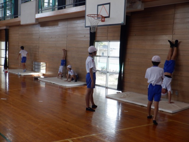 4年生は体育科でマット、跳び箱の練習をしていました。学習発表会で披露するので、みんな一生懸命です。