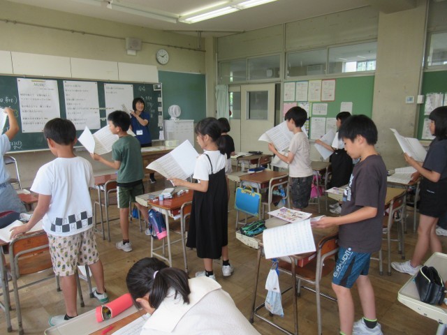 3、4年生合同で挑戦する、連合音楽会に向けての練習を始めました。今日は、歌詞の魅力を感じるために、朗読をしました。これから少しずつ練習を進めていきます。