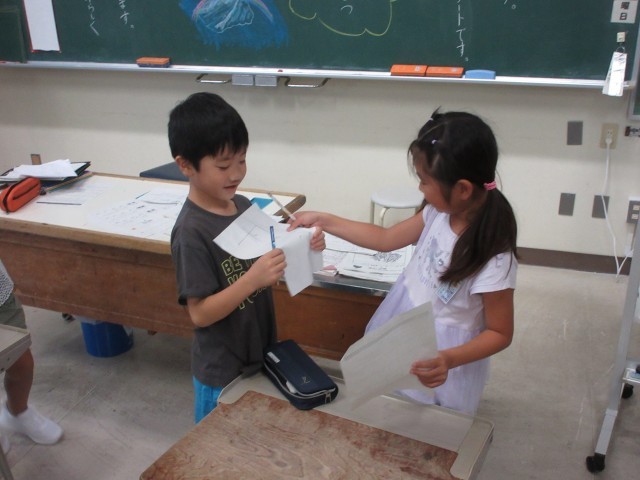 海に行った友達、花火をした友達、虫取りをした友達、いろんな友達の姿を見付けながら、夏休みの思い出を伝え合うことができました。