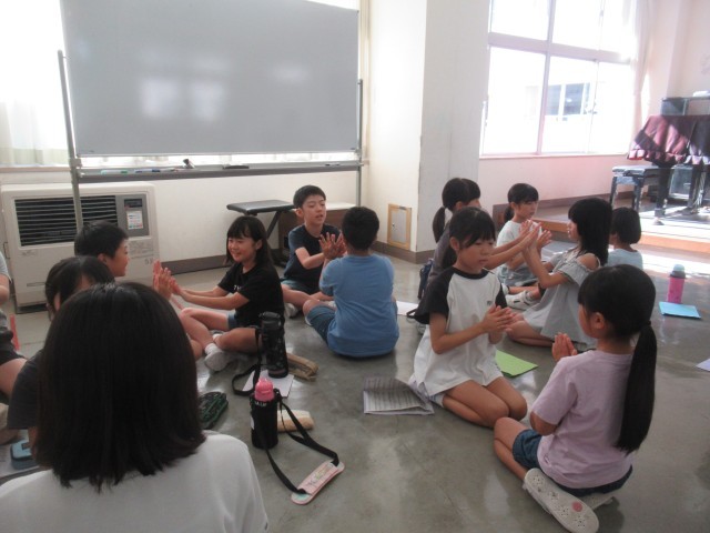 1限目、連合音楽会に向けて練習をしました。最初は「リズム遊び」を行いました。手拍子をしたり体全体を使ってリズムを感じたりしました。友達と息を合わせて取り組み、リズムに合わせて動くうちに自然と笑顔が広がっていました。
