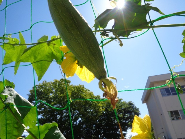 花が咲き、実がなっていたこと、どんどんのびて3階にまで達しようとしていることにとても驚いていた子供たちです。