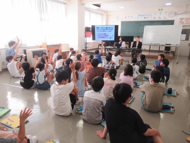 4、5、6年生を対象とした「禁煙教室」を行いました。講師の先生から、たばこが体にどのような悪影響を及ぼすのかをクイズや事例を等を交えながら教えていただきました。子供たちからは、「たばこは絶対に吸いたくないと思いました」や「もし友達が吸っていたら、注意したい」等の感想がありました。