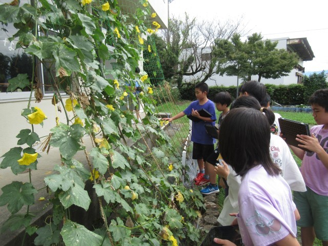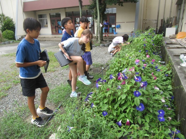 9月11日(木)5年 理科「ヘチマとアサガオの花の中は?」