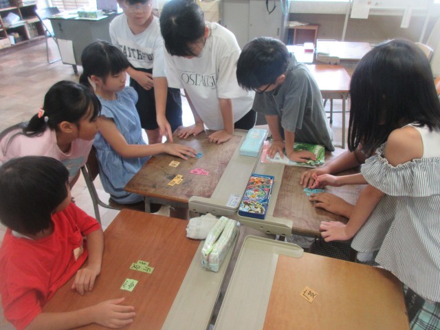 漢字パズルを通して、漢字には左右や上下等、部分部分に分かれているものが多いことや