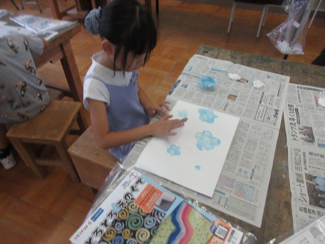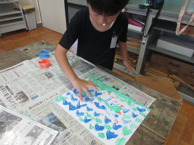 と、絵の具の感触を楽しみ、その面白さをたっぷり感じながら模様を表現することが出来ました。