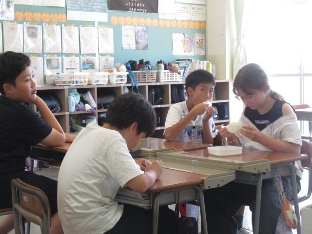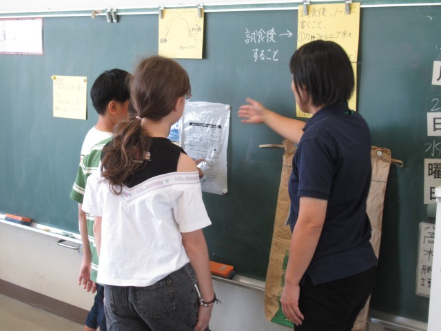 社会科では、外国産のお米を食べました。子供たちは、普段食べているお米との違いを話し続けました。