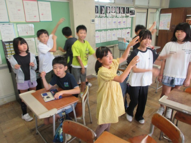 そして、早速、振り付けありで歌ったMUSIC・・・今までにない最高の笑顔と体全体を使った表現で、楽しい気持ちが4年生教室中に響きました。