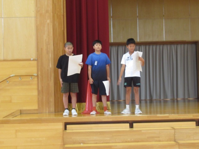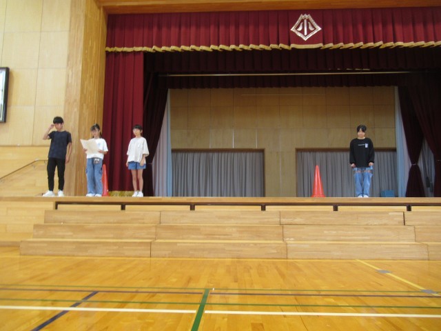 今回から体育館のステージを使って、学習発表会の練習を始めました。これまでは、せりふを覚えたり、細かい身振り手振りを考えたりしてきました。今回は、ステージを使うので今までよりもレベルが上がった練習です。