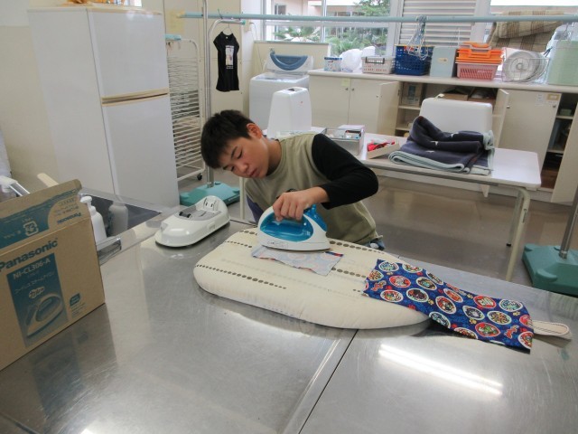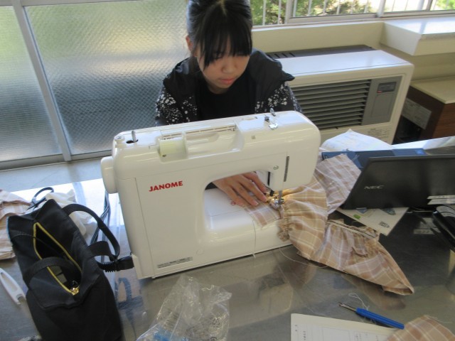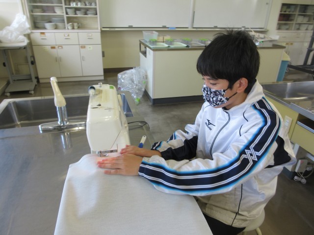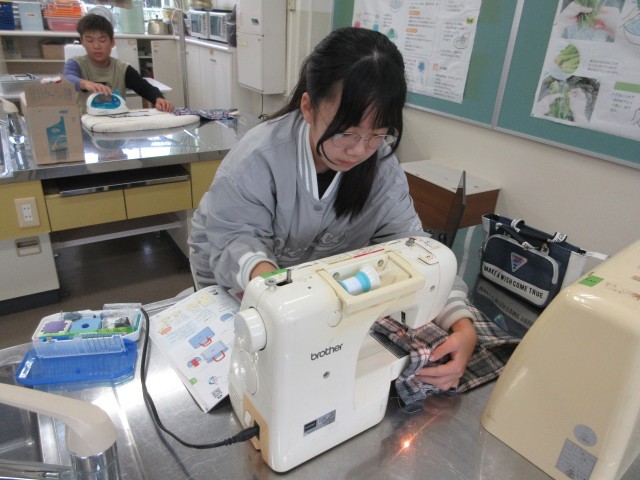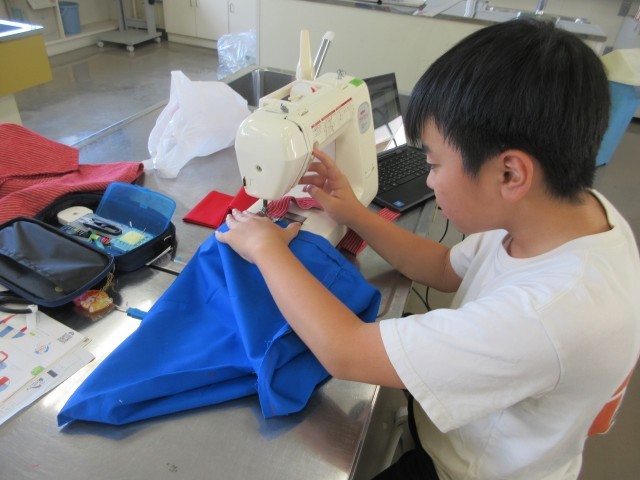 家庭科では、一人一人が作りたいものを考え、家から布を持ってきて制作しています。子供たちは、ティッシュカバーや手提げバック等、自分の生活に合わせて作りたいものを考えていました。思い出の洋服を巾着にしようと、リメイクに挑戦している子もいます。作り方の手順を確かめながら丁寧に作っています。