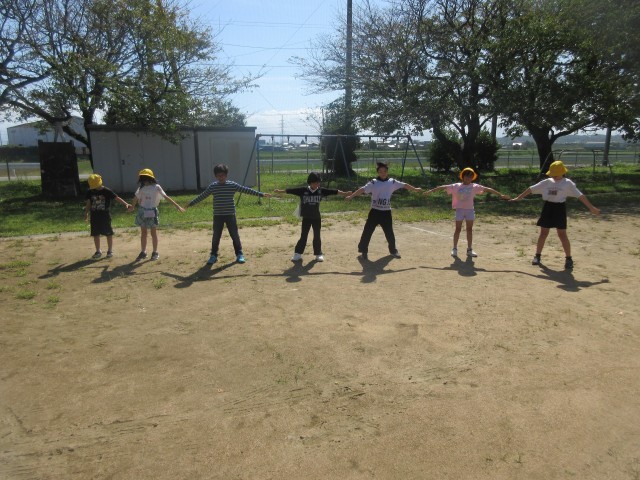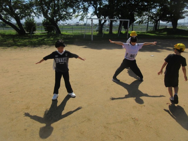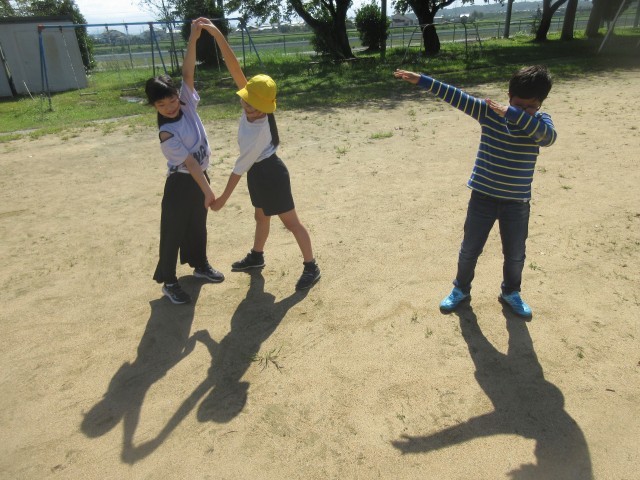 振り返りでは、「かげおくりをするときって、太陽が背中側にくるんだね」「かげって太陽と反対側にできるんだ」という発見があり、遊びを通して、しっかりと日なたと日かげの秘密を探ることができました。