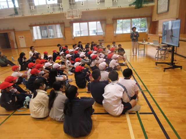 講演「挑戦!努力の先に笑顔を咲かせよう」では、自分らしさを大切に、夢に向かって挑戦し続けることにより、自分の道は開けるというお話をしていただきました。その後、下学年・上学年に分かれて、ランニングの実技指導を行っていただきました。走るときのフォームや、ペース配分の仕方、走るときは軸を意識して走ること等、たくさんのことを教えていただきました。